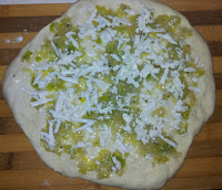 5. Cand aluatul a crescut, si-a dublat volumul, il punem pe masa de lucru si il mai framantam 10 min., apoi, il intindem cu mainele, pana obtinem o foaie cu o grosime de 1 cm., intindem prazul, apoi radem telemeaua deasupra.