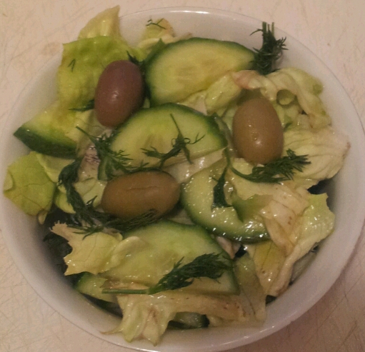 2. Cat se prajesc cartofii, ne ocupam de salata. Spalam bine sub jetul de apa rece salata verde, fiecare frunza in parte ca sa nu ramana. La fel, procedam si cu restul legumelor, inclusiv, mararul verde,
