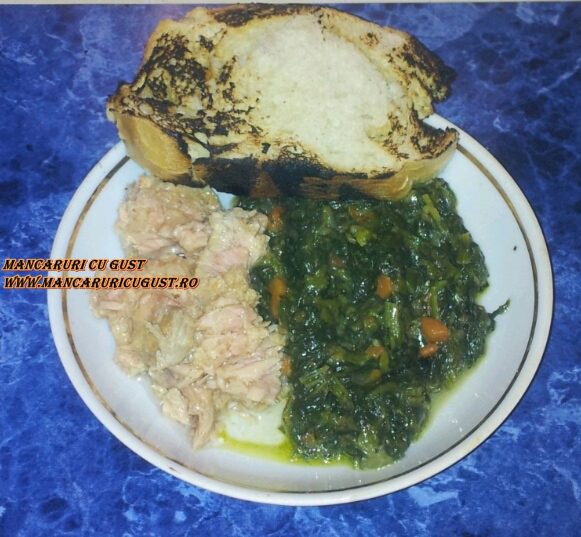 Reteta culinara Mancare de spanac cu ton si paine prajita pe flacara reteta rapida gata in cca 12-15 min. din Categoria Mancare de post si mancare vegetariana.