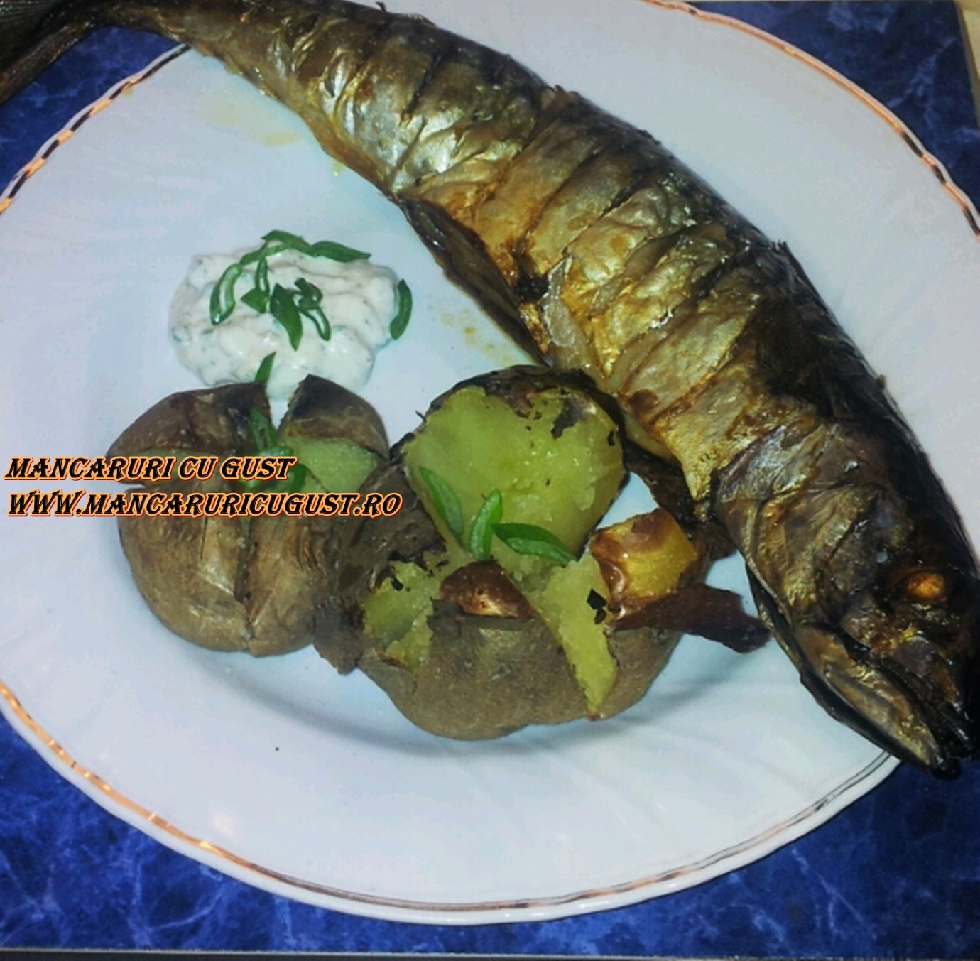 macrou-la-gratar-cu-cartofi-copti-si-sos-de-smantana-cu-marar-verde-si-usturoi reteta-mancaruricugust