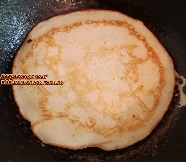 4. Punem tigaia pe foc, cand s-a incins bine, adaugam clatitele una cate una, cu ajutorul unui polonic, si le prajim cate 1-2 min pe fiecare parte.